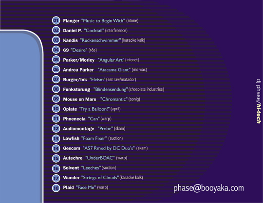| "That mix CD is dope! Satellites in orbit pondering the next level of evolution ... loungecore for the 22nd century ... phuck yeah, DJ Phase continues the progression of his personal style." | |